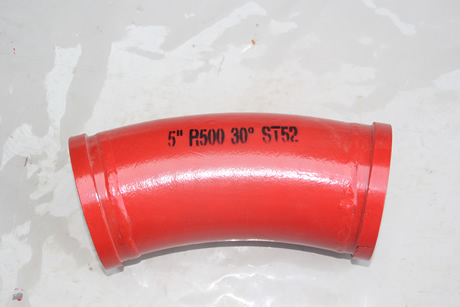 因為彎管對彎曲強度要求比較大所以也有不一樣的地方,比如普通的地泵直管管體外徑是133mm,而潤宏站在使用方的專業(yè)角度,使用的是外徑140mm的管體,目的就是有彎度的部位壓力大摩擦力大,為了使混凝土在管體內(nèi)順暢流通不堵管又可以更耐磨。地泵彎管常用的彎曲半徑有R1000、R750、R500、R350,彎度有90度、60度、45度、30度等(可根據(jù)需要定做)。